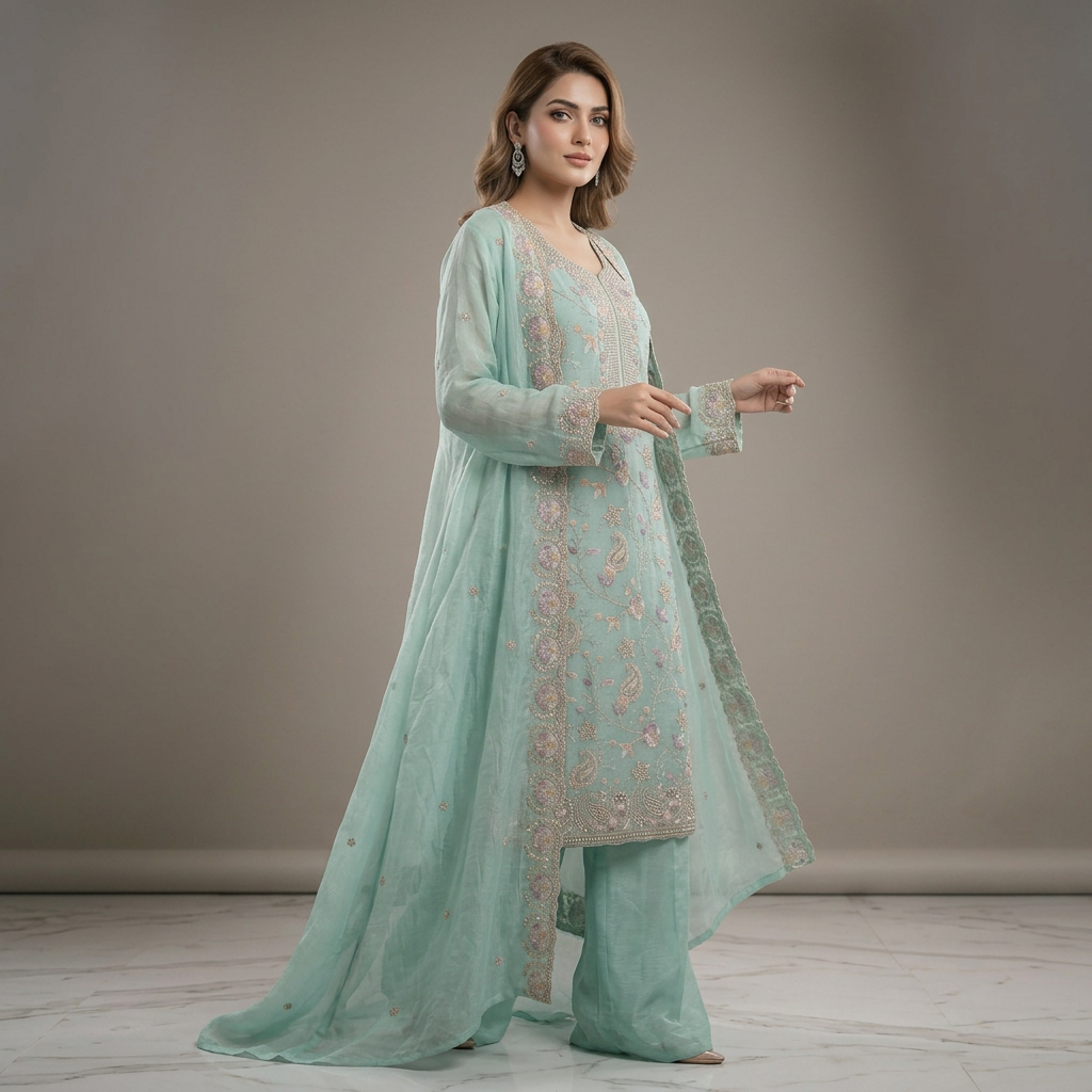 Febric Type: Luxary Jorjet Embroidary Stone Work , Color: Pest With Silver