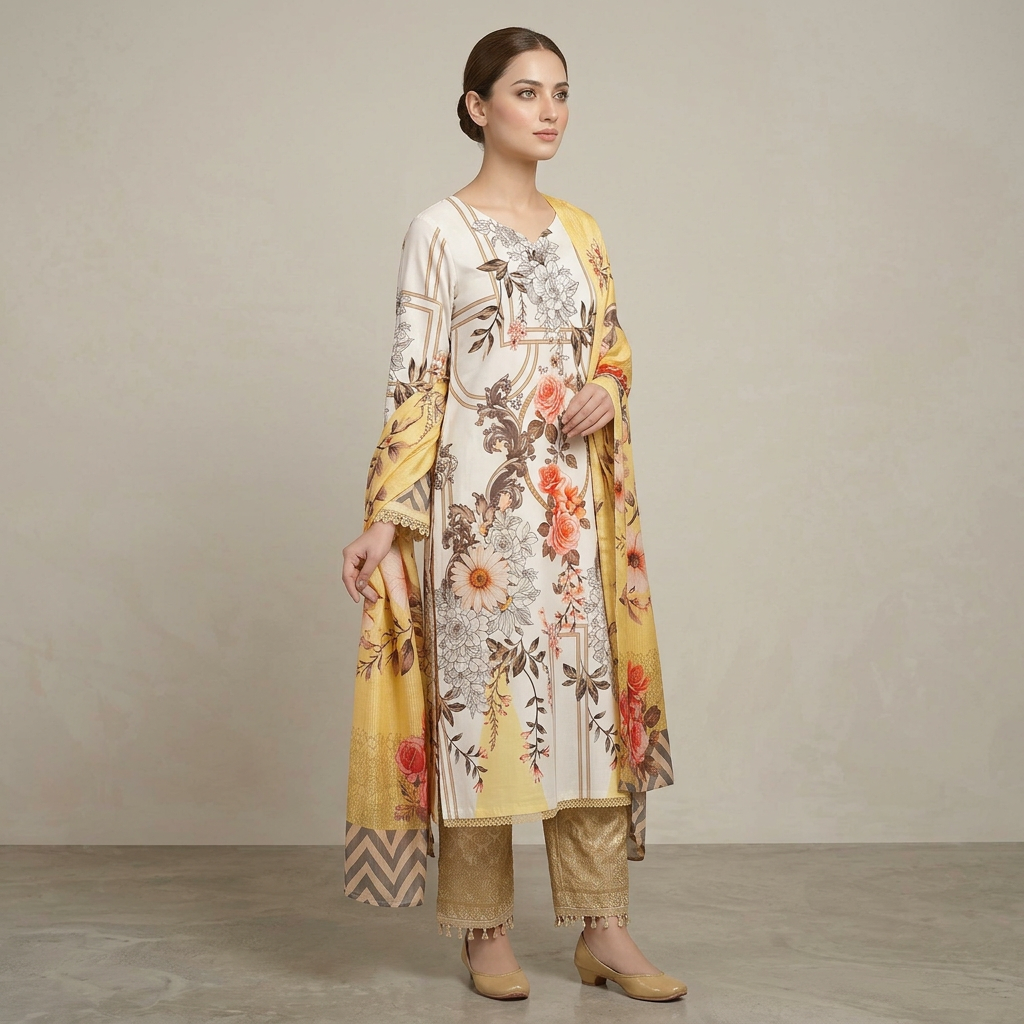 Febric Type: Silk Disital Print , Color: Chockotel, Black & White, Pink & White, Black Print, White & Yellow, Baby Pink, Black, Merun, Mishti